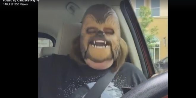 O femeie din Texas purtând masca lui Chewbacca, personajul hirsut din Star Wars, face senzație pe internet: clipul ei a depășit recordul de vizionări pe Facebook Live, relatează AFP, citat de Agerpres.