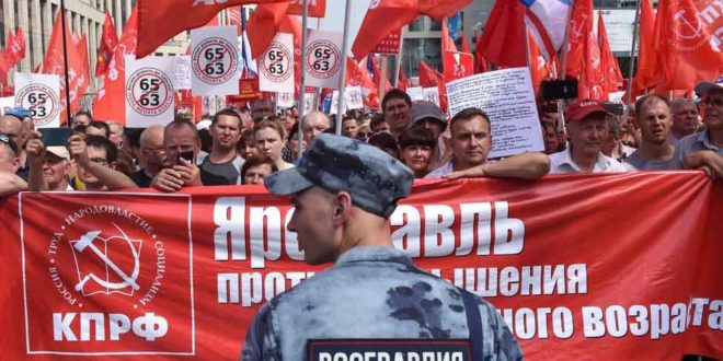 Protestatarii s-au adunat în oraşele din Rusia pentru a se ridica împotriva propunerii guvernului de a creşte vârsta de pensionare. Protestele au fost organizate de susţinătorii liderului opoziţiei, Alexei Navalny , care este arestat în arestul administrativ pentru organizarea unui protest neautorizat în capitală în ianuarie.