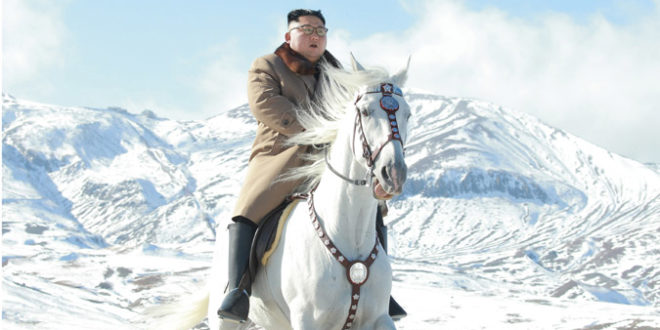 Kim Jong Un este văzut în fotografiile difuzate de agenţia de presă de stat KCNA cum călăreşte singur pe un cal alb pe pajiştile şi pădurile înzăpezite de pe Muntele Paektu, leagănul spiritual al „dinastiei” Kim.